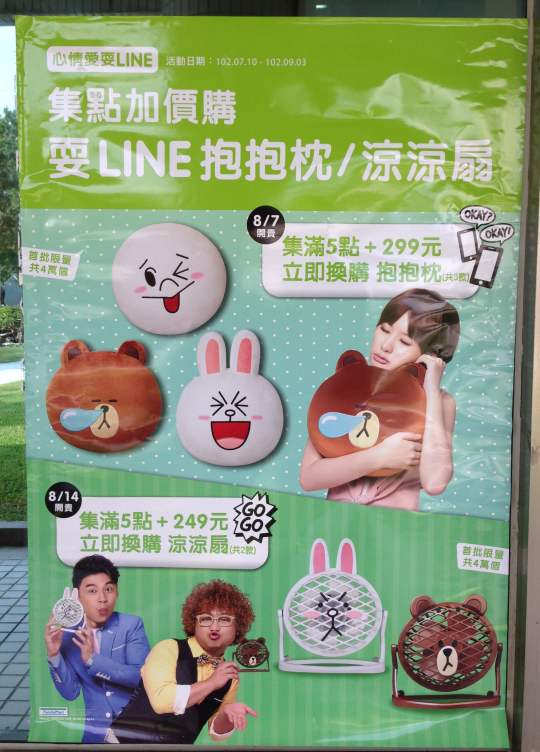 還記得全家目前正在進行「集點送」LINE 大頭筆嗎?目前活動雖然還在進行中,但如果您已經擁有全套大頭筆,接下來 8/7 以及 8/14 還有「LINE 抱抱枕」以及「LINE 涼涼扇」可以加購唷!^^